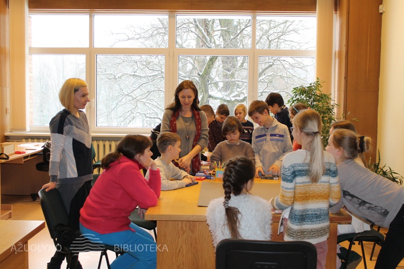 Prasideda kūrybinės dirbtuvės ir mokytojos - Gražvyda Andrijauskaitė (kairėje) ir Renata Skraskadamskienė (viduryje)- supažindina vaikus su kūrybine užduotimi